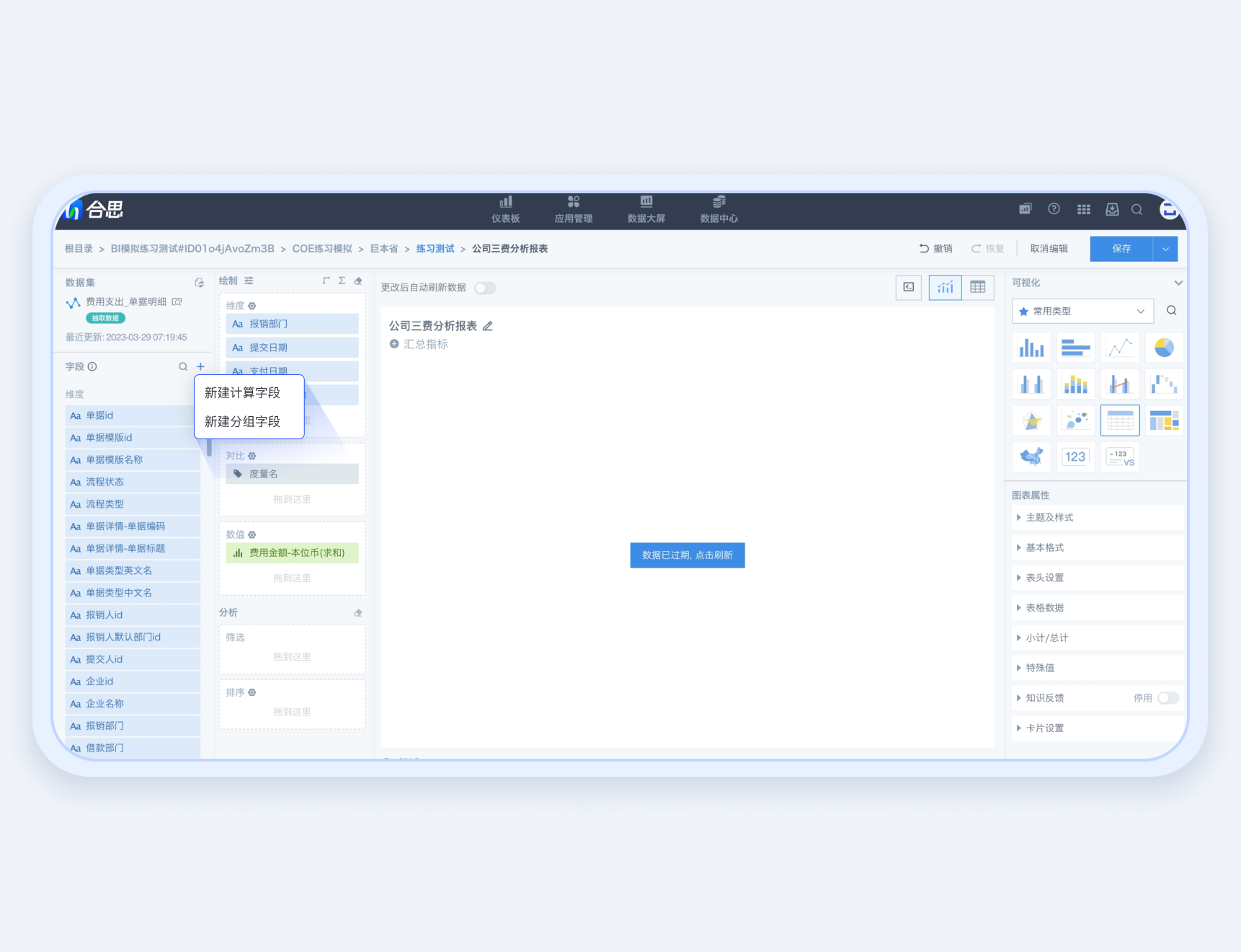 拖拉拽式自定义图表模板,几十种图表类型灵活选择,字段、图表属性灵活定义。