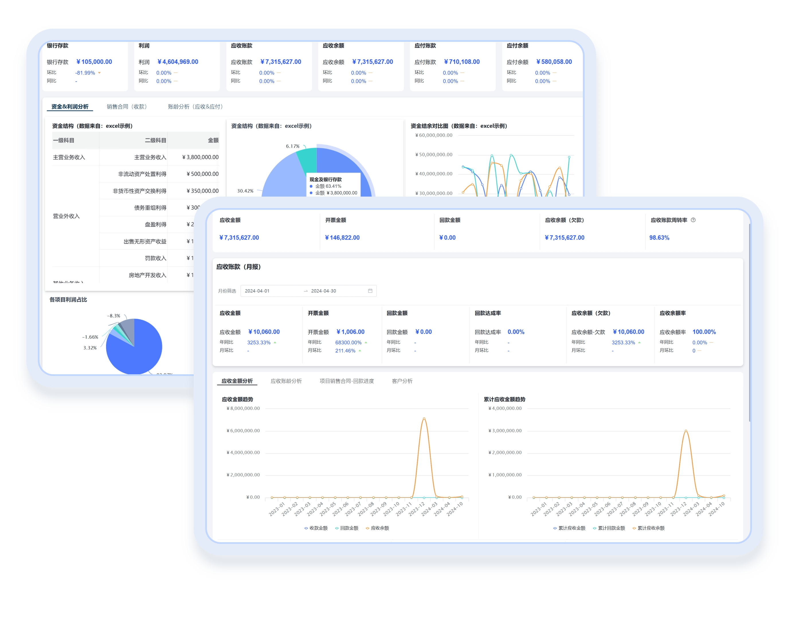 支持自定义增加计算字段、分组字段。支持上百种函数灵活判断、计算,以实现较复杂的计算逻辑处理。支持分组条件、规则灵活定义,如按项目、合同等分组统计。