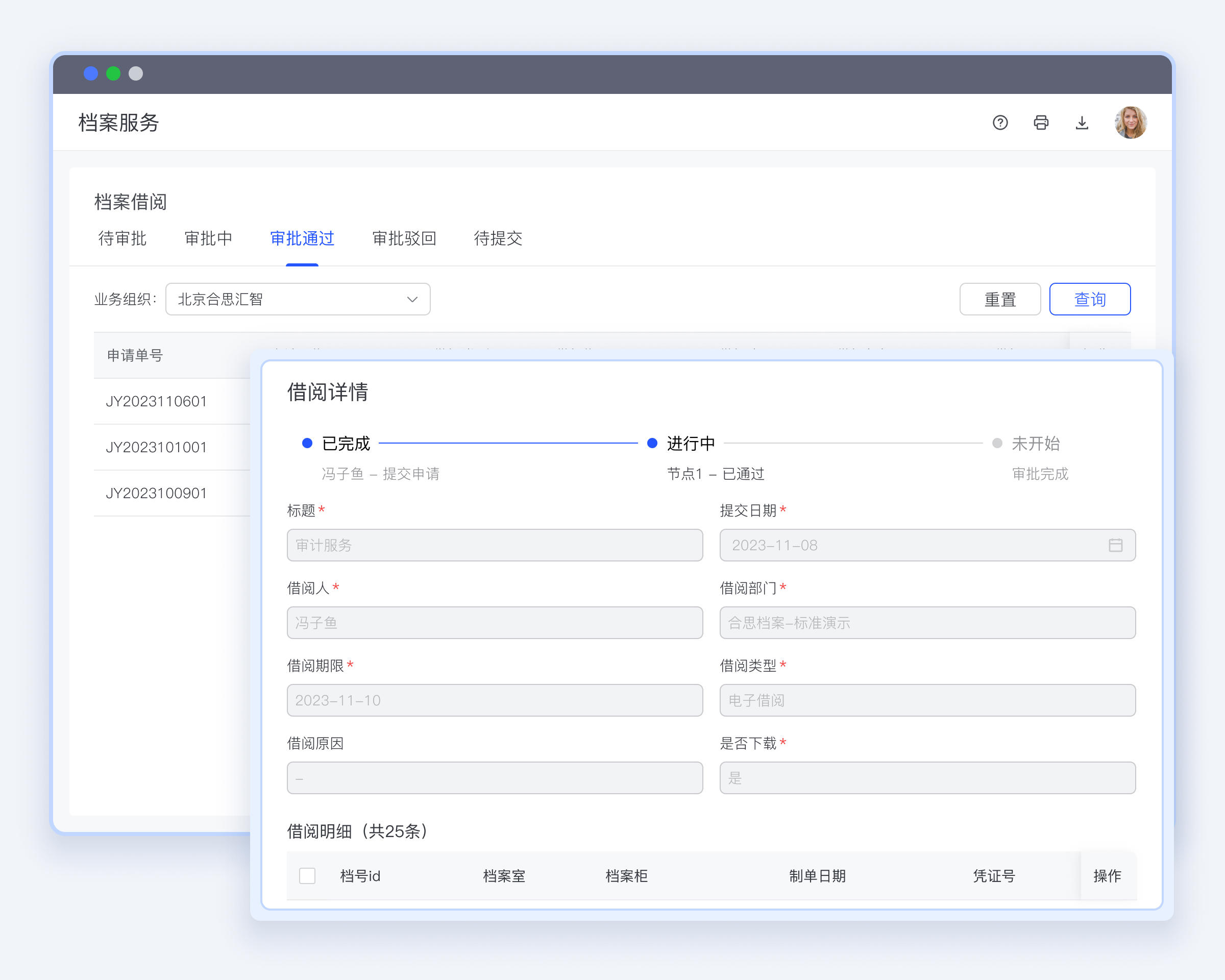 在线借阅,电子到期自动收回。第三方系统通过接口调阅预览组装好的档案及相关文件。