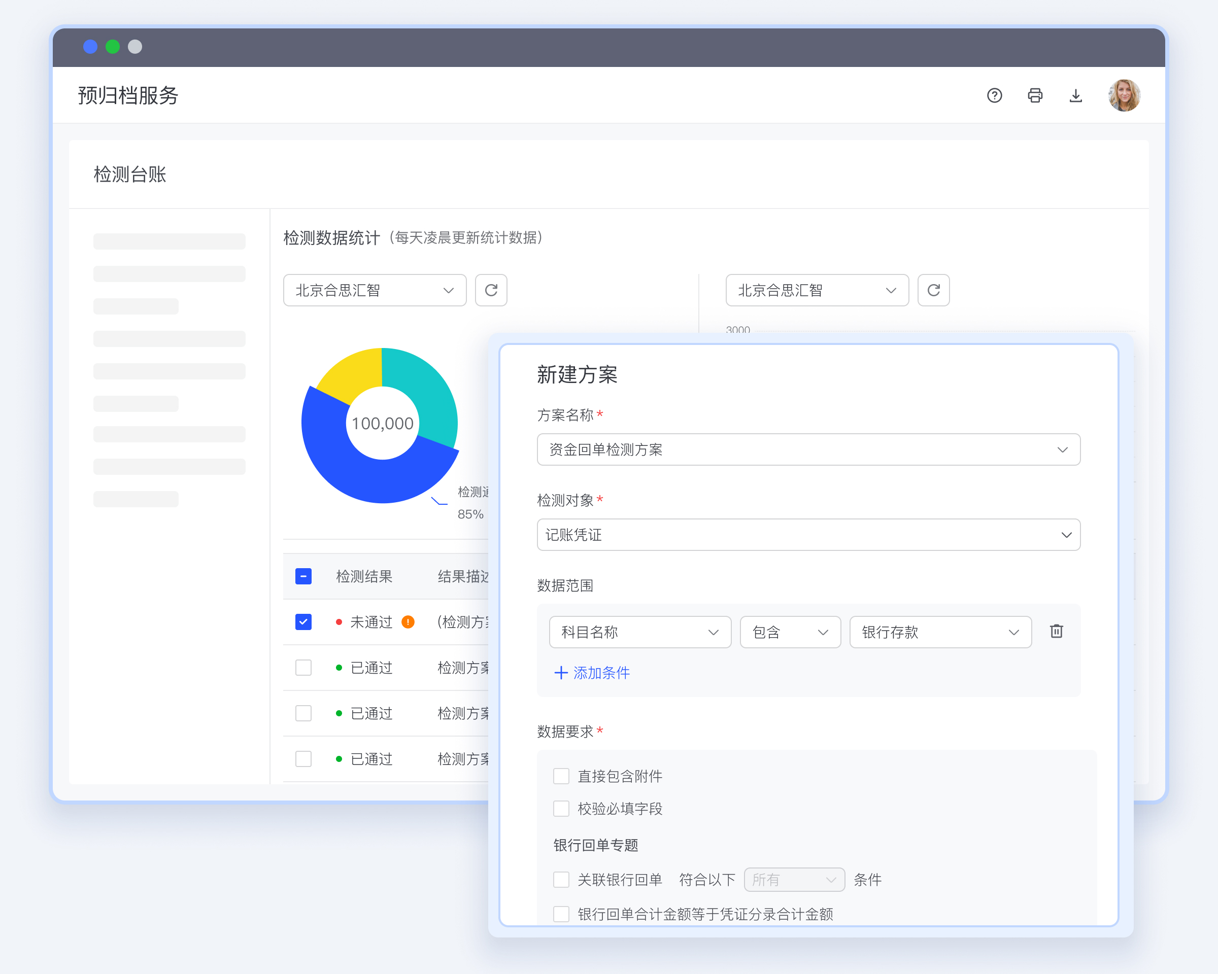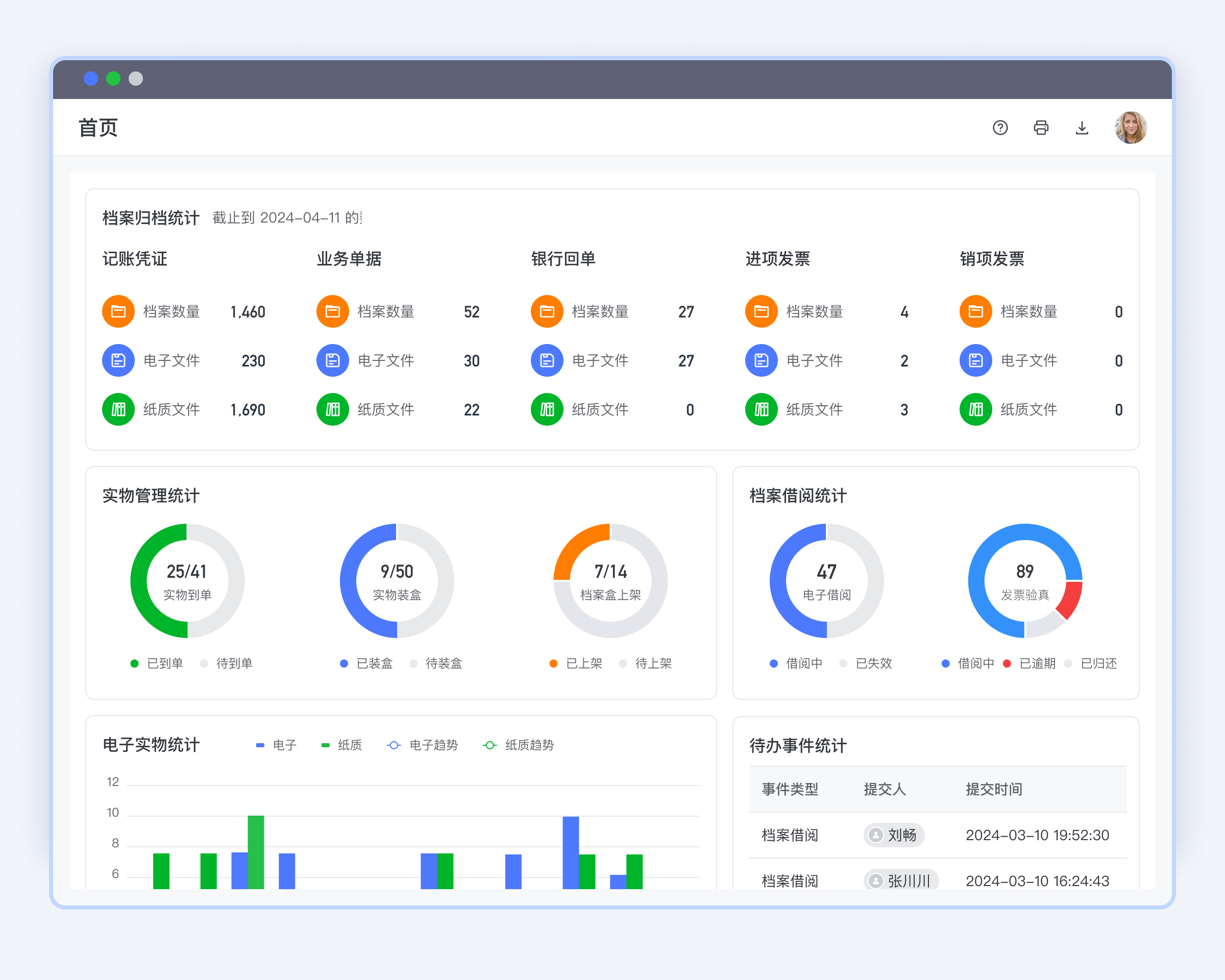 合思会计电子档案管理系统多种档案数据统计方式,可视化呈现,数据异常快速定位,实现档案数据资产化