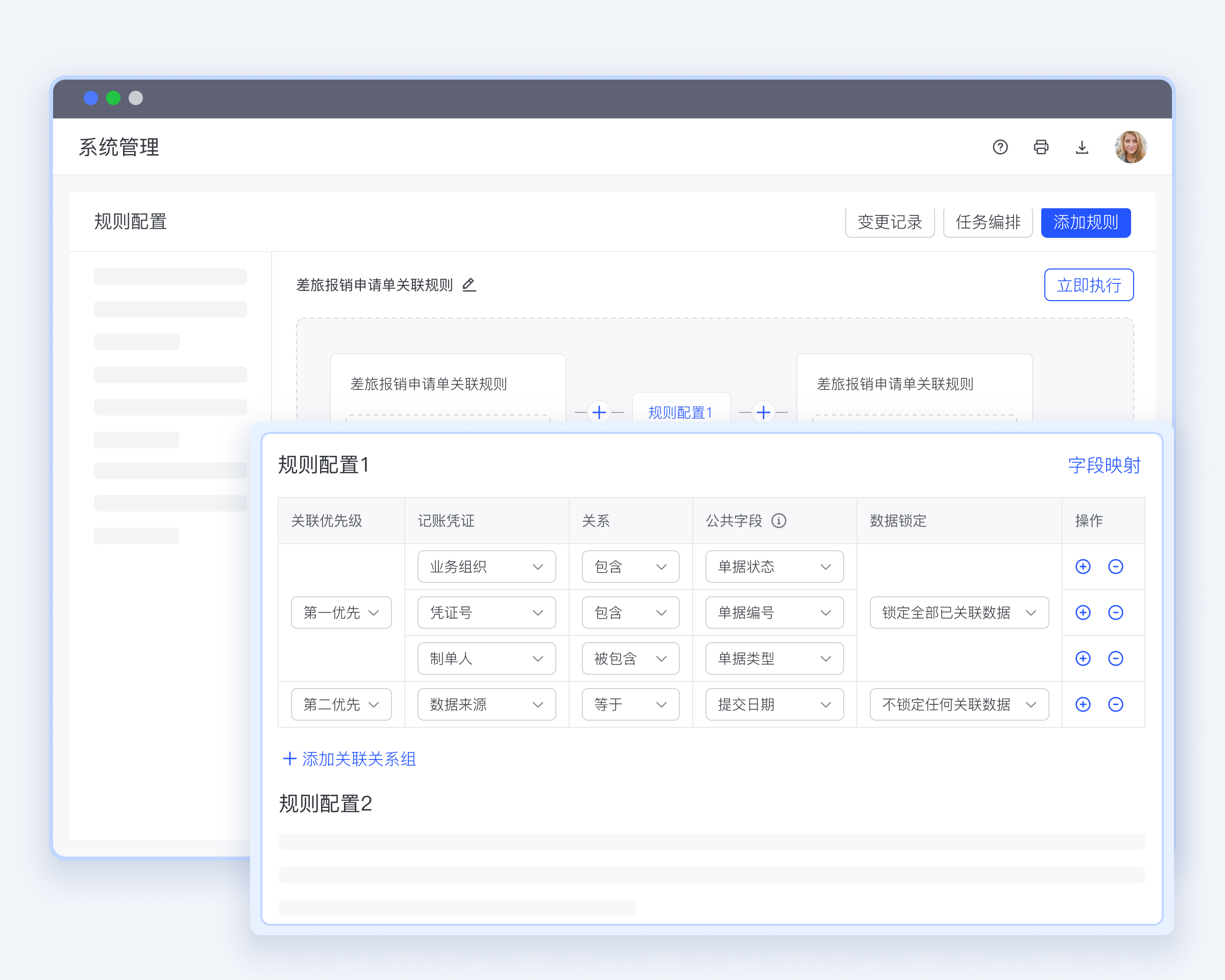 合思档案关联规则可视化配置。不同系统、不同类别会计凭证自动关联匹配及组装,形成完整业务链组合数据。