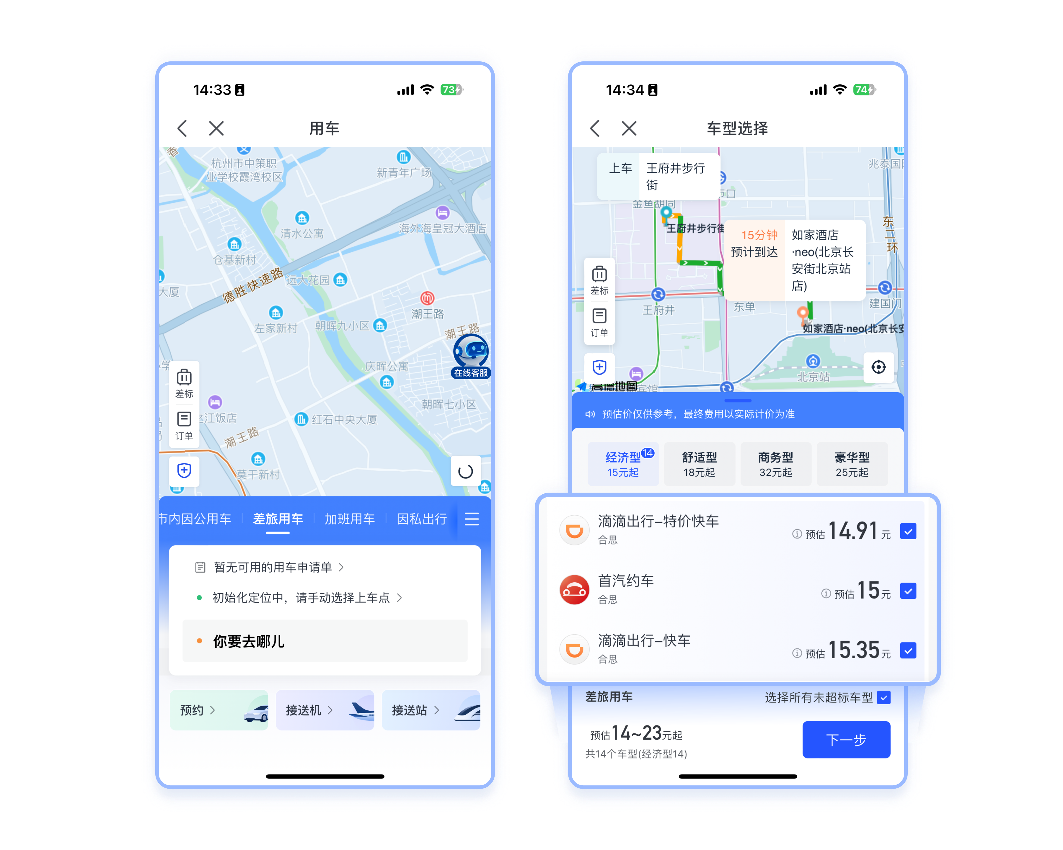 滴滴出行直连对接,曹操、神州、阳光等200家以上网约车资源