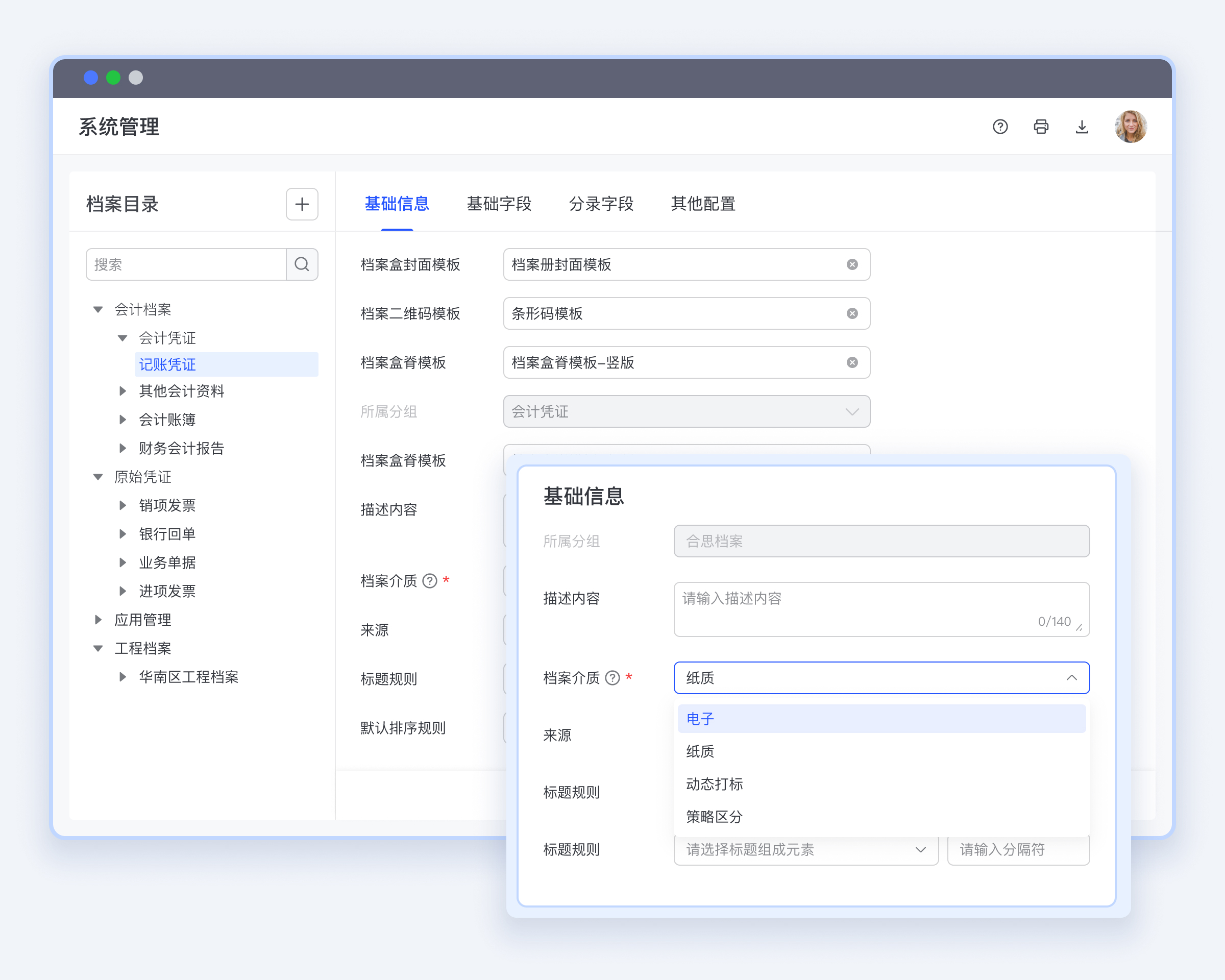 合思档案自定义档案目录分类、档案字段等。灵活拓展档案目录框架,动态自动封装归档接口,便于对外。