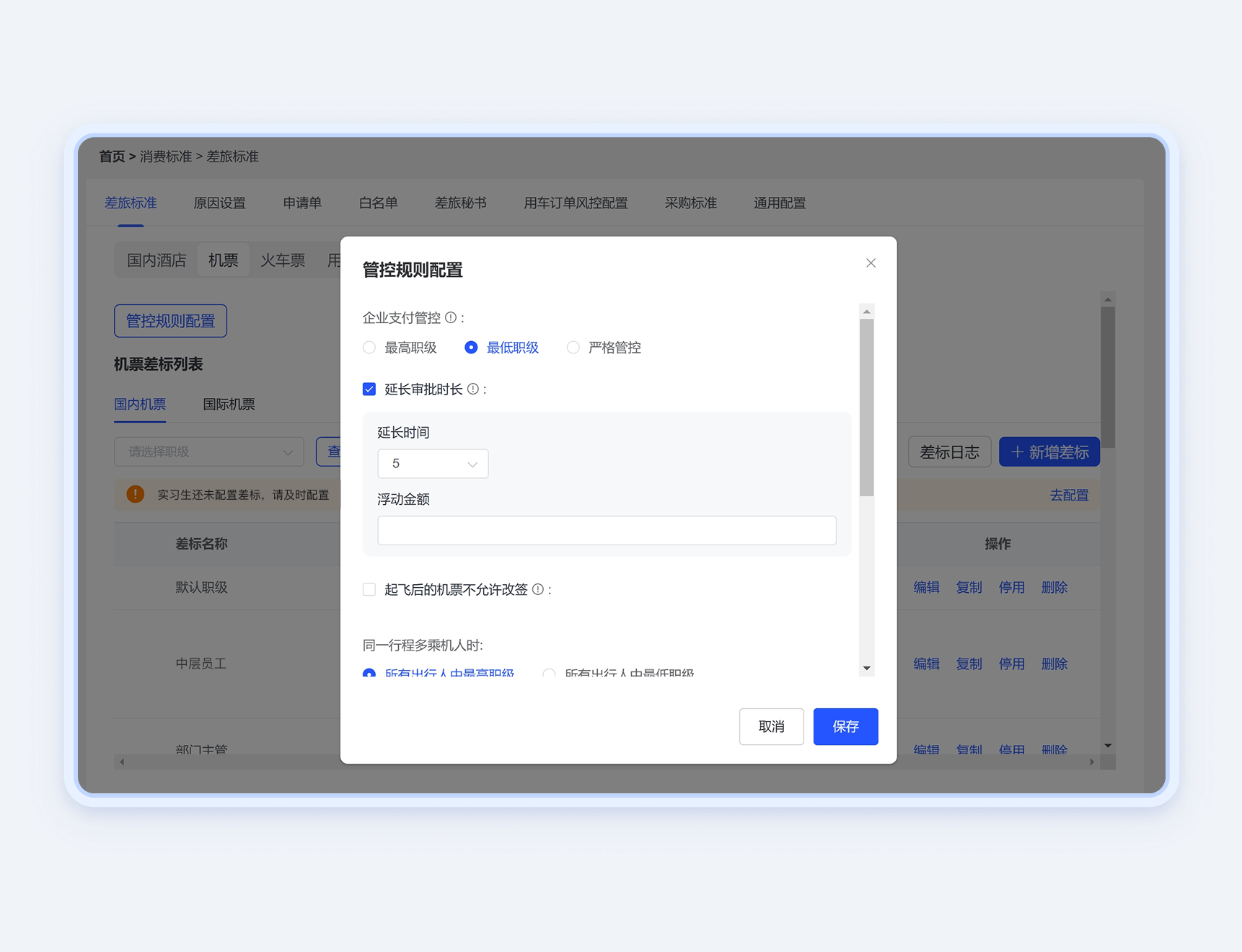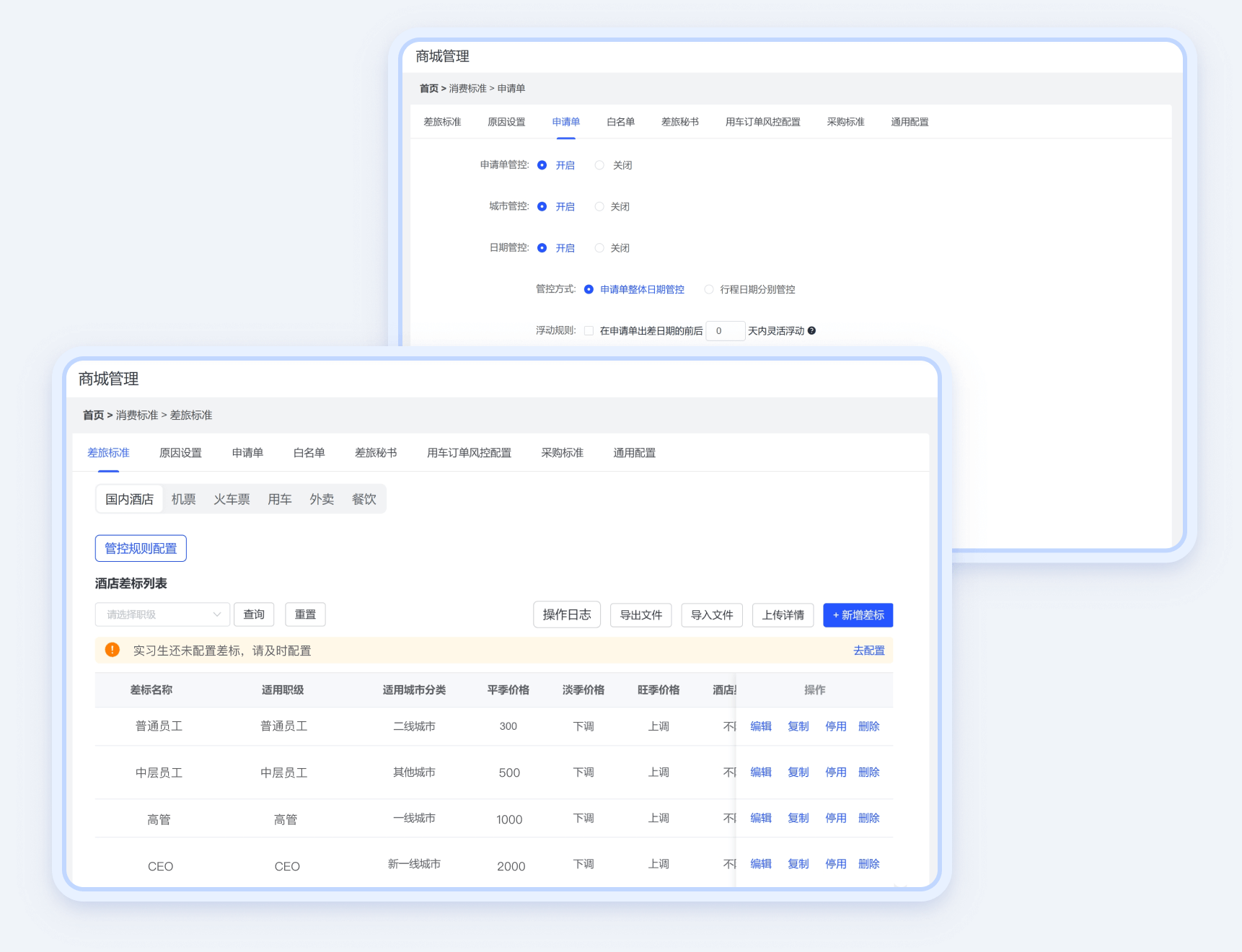 消费过程数据管控,同一平台内比价,降低差旅成本。