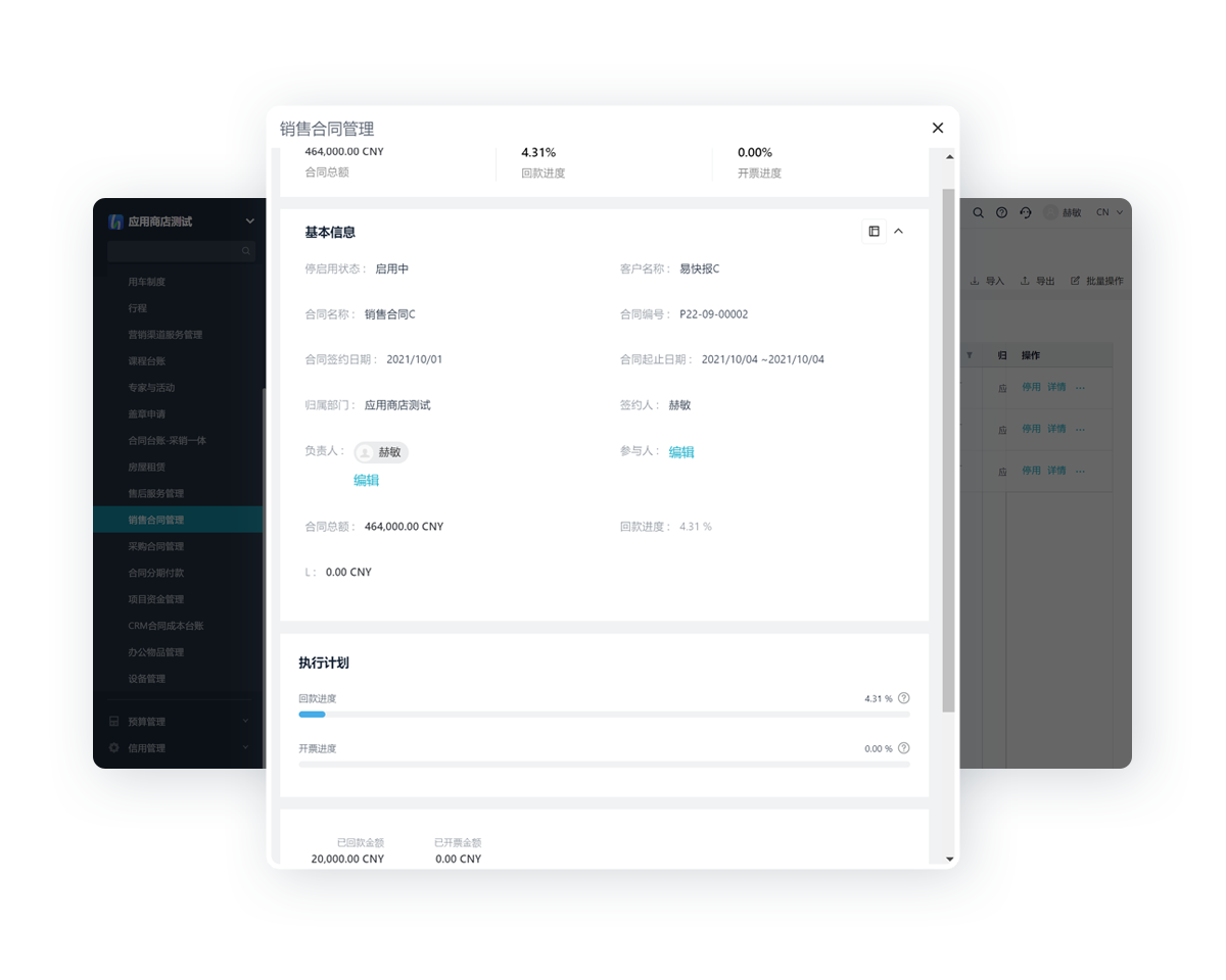 销售回款周期长,进度不透明,开票反复与财务线下沟通;财务人工进行收款认领,开票记账压力大;渠道分润比例不固定,需要反复核算。